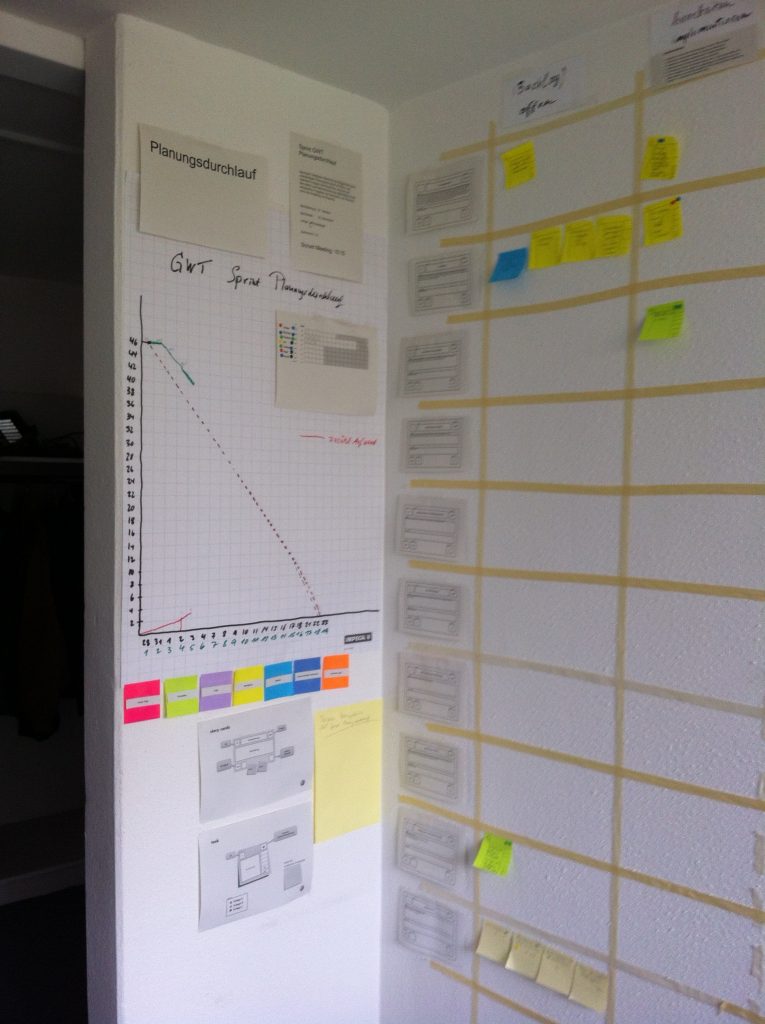 Für das Entwicklungsteam bedeutete das Burndown-Chart auch eine Möglichkeit, bestimmte Prozesse zu optimieren oder Prozessgruppen im Taskboard so zu verändern, dass die Wartezeiten zwischen unterschiedlichen Prozessgruppen minimiert wurden.